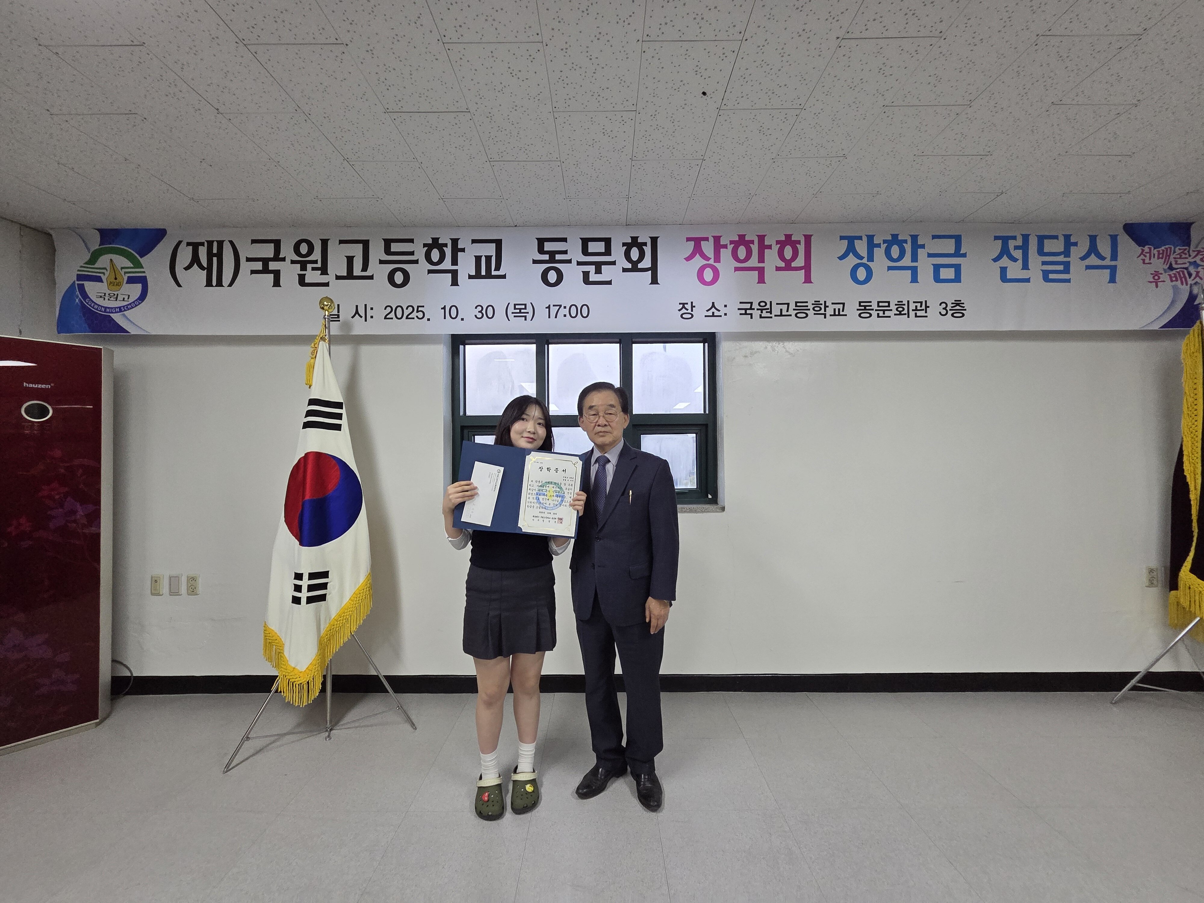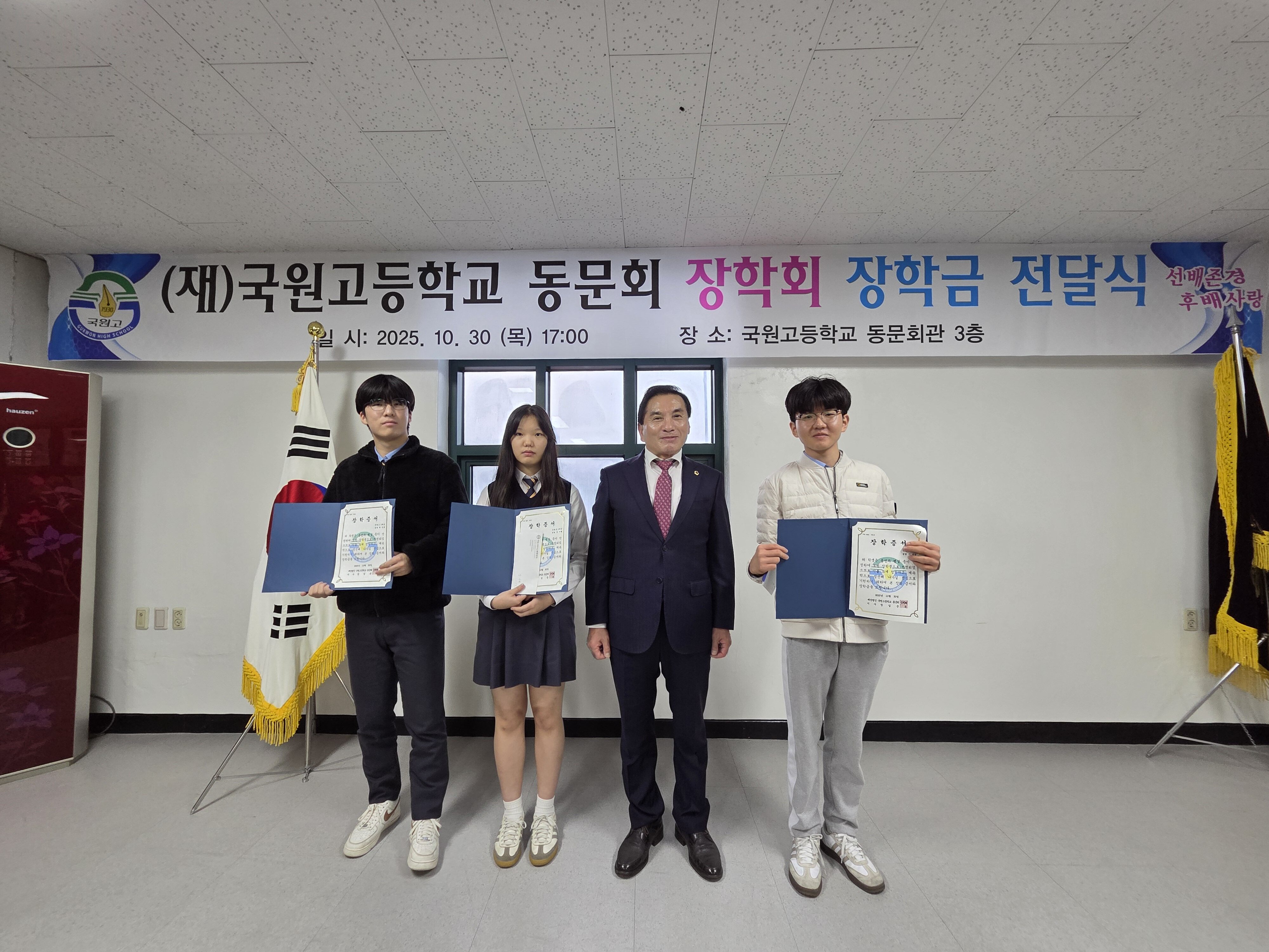 2025년 재단법인 국원고등학교 동문회 장학회 장학금 전달식
